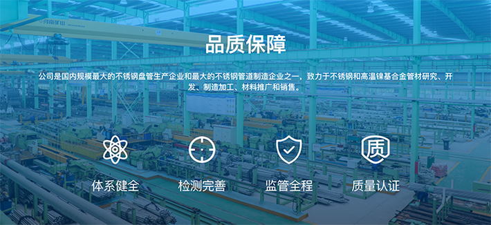 公司是不銹鋼盤管生產企業和不銹鋼管道制造企業之一,致力于不銹鋼和高溫鎳基合金管材研究、開發、制造加工、材料推廣和銷售。